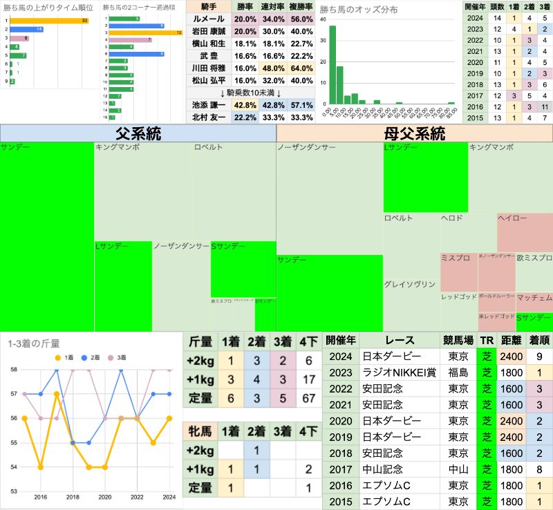日本ダービーが3頭、安田記念が3頭、エプソムCが2頭