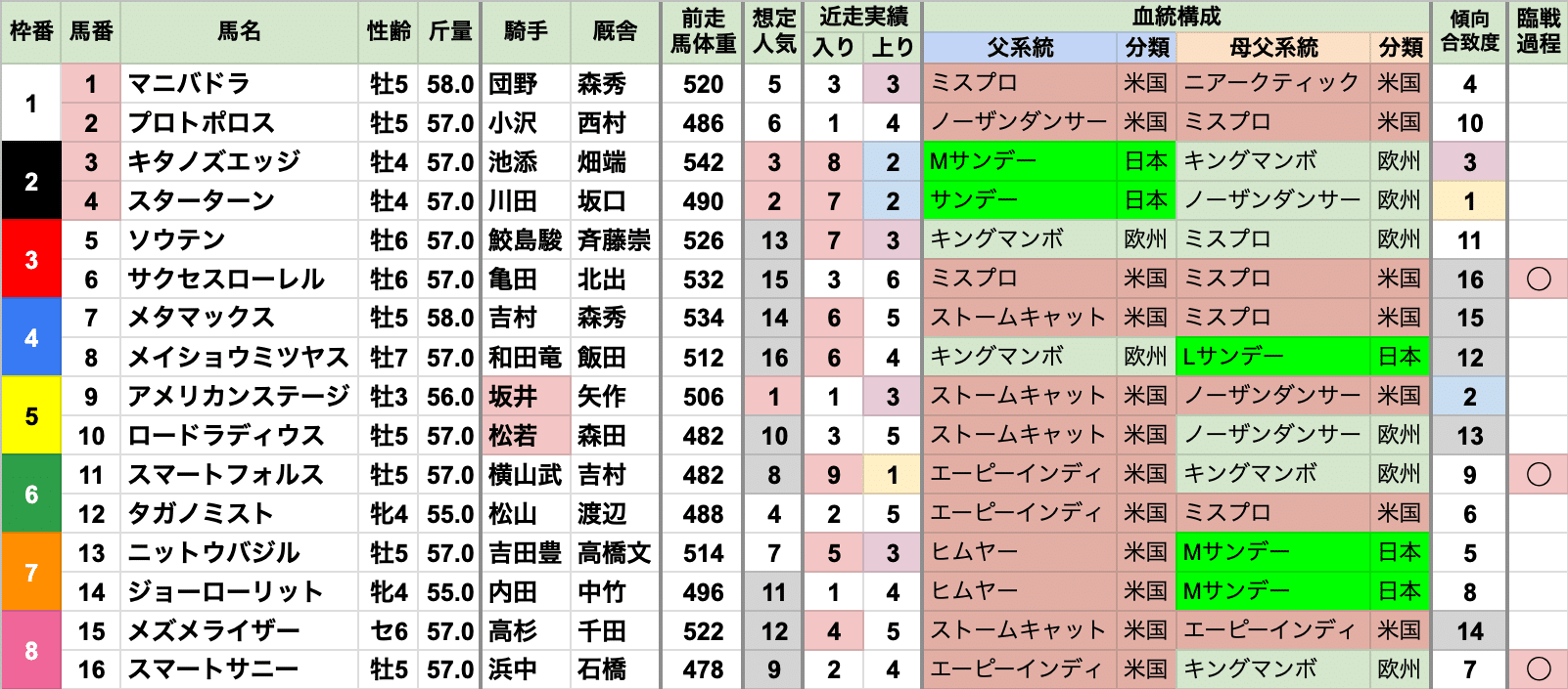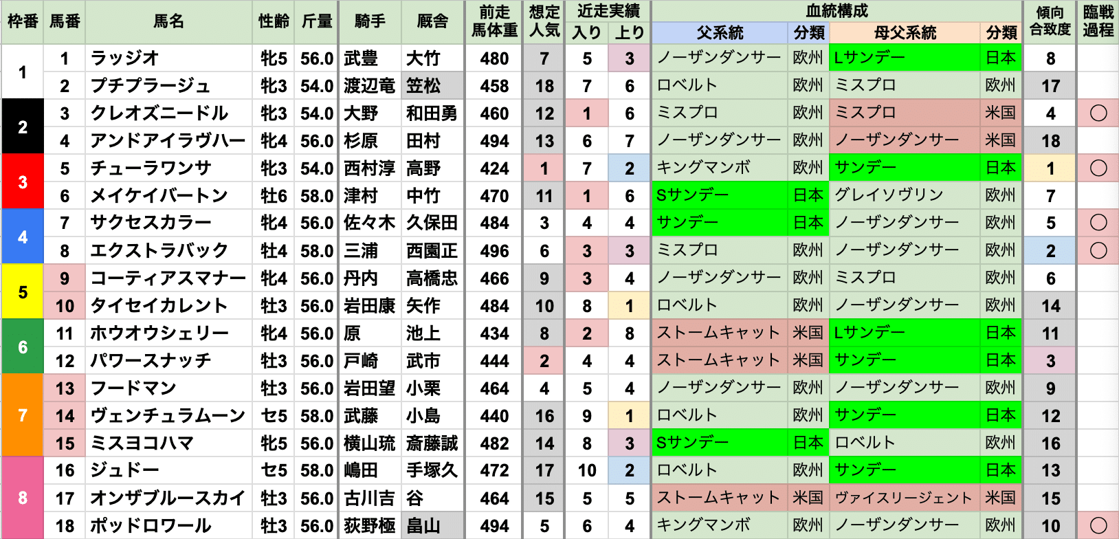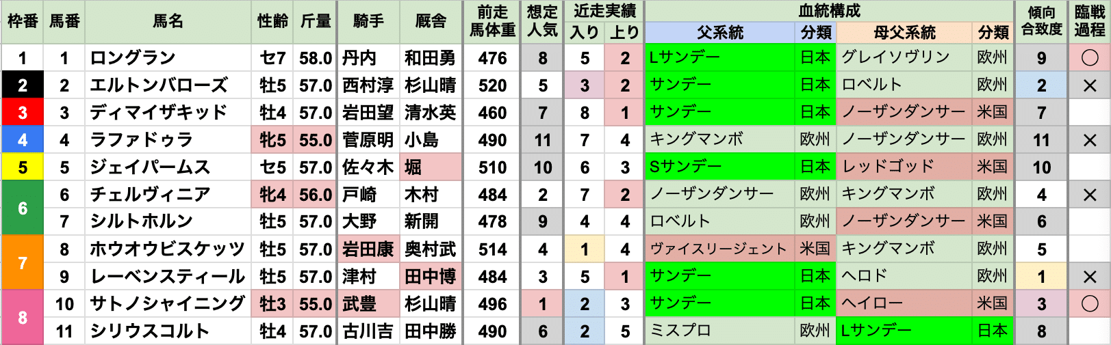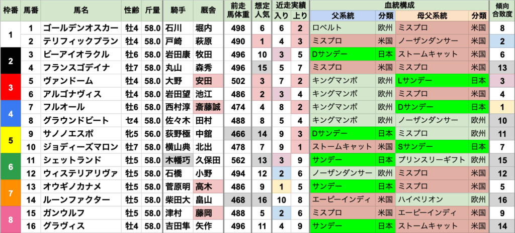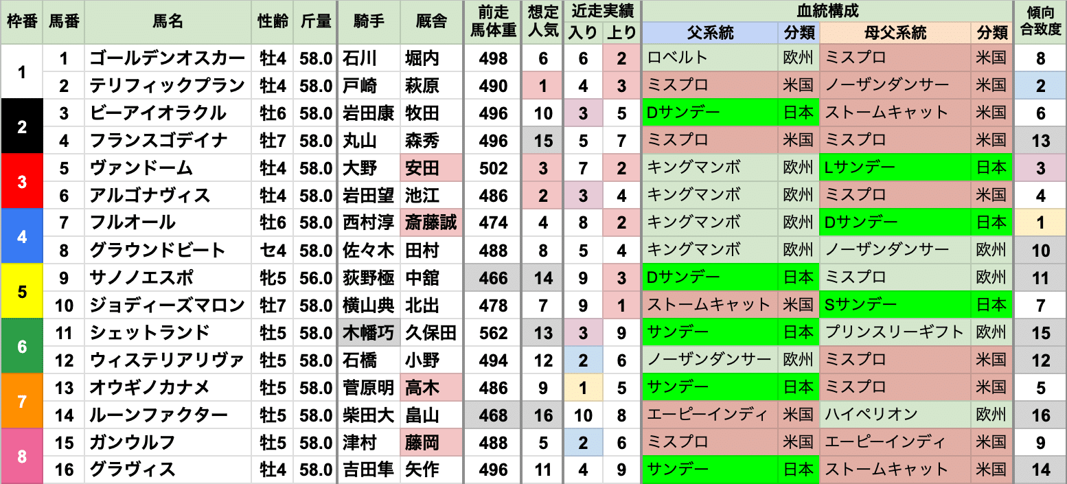 臨戦過程前走も東京の重賞を走った馬が有利で、
