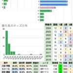 | 人気 | 1番人気が5勝、連対率90%で、かなり安定感がある 2020年以降は、6番人気以下の連対なし、7番人気以下の3着以内なしが継続中 |