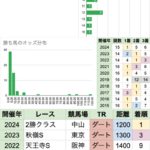 京都開催が無かった2021~2022年は、阪神で姫路Sが施行されているため、結果を通算する