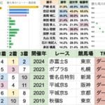 | 人気 | 1番人気が未勝利で、4-6番人気が3勝している 4-6番人気は連対率も高く、二桁人気も3着以内に入りやすい |