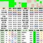 | 騎手は、ルメール/川田将雅の勝率が特に高い 短期免許騎手の勝率も総じて高めで、今回のメンバーでは、C.デムーロが高い 全体の勝率に比べると、永島まなみはこの条件で高い 厩舎は、池江泰寿の勝率が飛び抜けて高い 長谷川浩大は複勝率が断トツだが、連対率は大きく下がる |