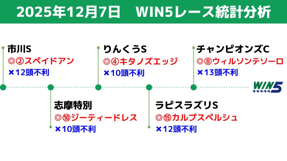 12/7(日)のWIN5対象レースの統計データを分析し、買える馬/消せる馬を検討します