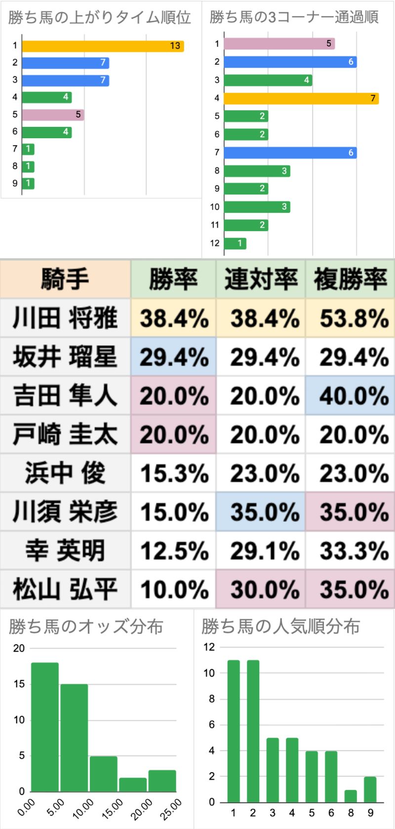 | 上がりタイム | 位置取り | オッズ |