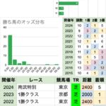 | 人気 | 4番人気以上が10連勝中で、かなり荒れにくい 紐荒れ傾向はあって、例年6-7番人気の複勝率が高い傾向 二桁人気も2頭連対している |