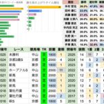 | 寄与度は厩舎の方が高く、上村洋行の勝率が飛び抜けて高い 高柳大輔/小林真也/矢作芳人までが勝率30%以上 騎手は、川田将雅の勝率が特に高い 全体の勝率に比べると、斎藤新/太宰啓介は、この条件で特に高い 津村明秀は圧倒的に騎乗数が少ない中で、勝率は高い |