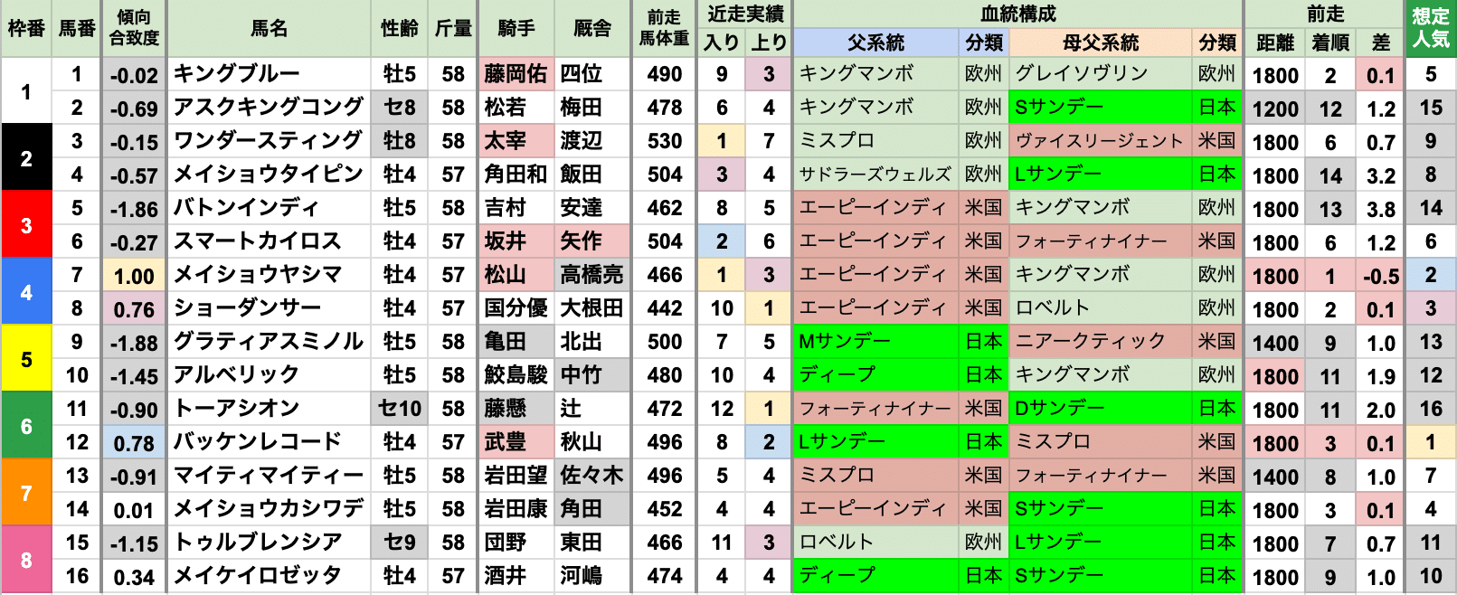 ◎前走が京都1800mかつ、0.4秒差以内