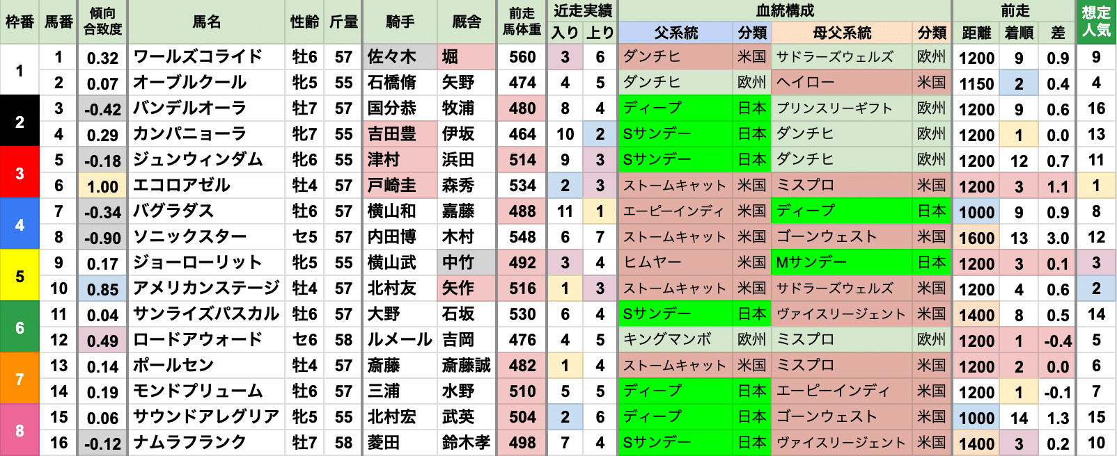⑥エコロアゼル/戸崎圭太/森秀行 統計イチオシ