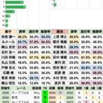 厩舎は、上原博之/菊沢隆徳/手塚貴久の勝率が特に高い