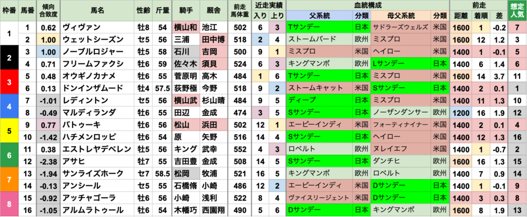 前走レースの重複は、タンザナイトSと淀短距離Sが2頭ずつ