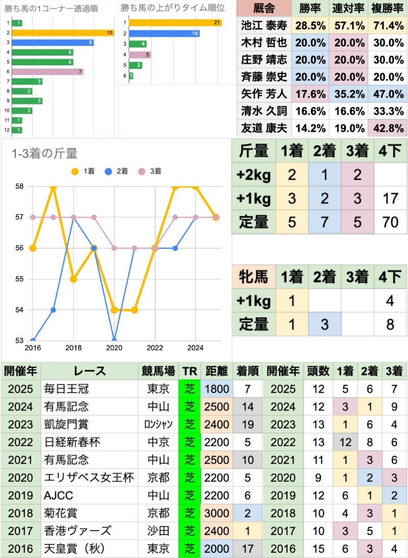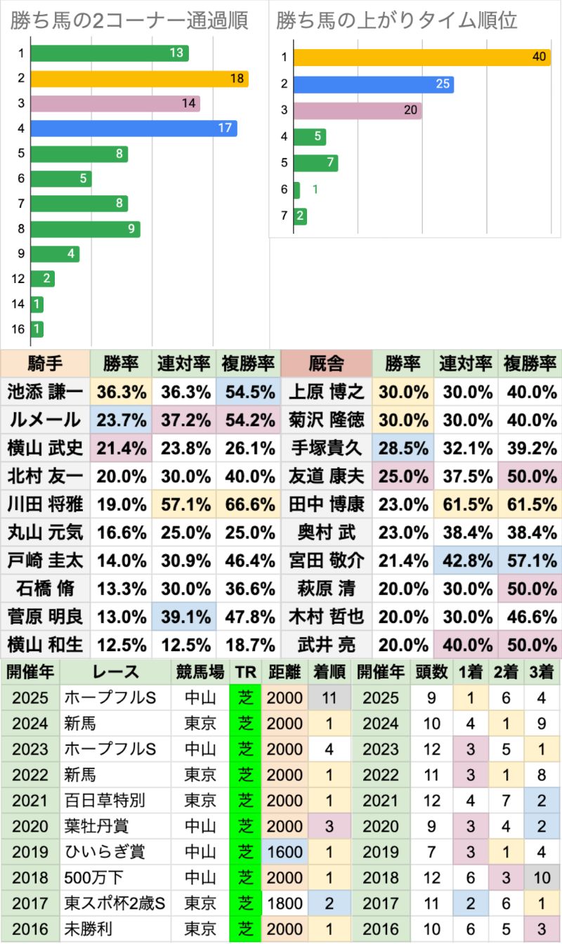 前走コースは中山1600m/2000m、東京1800/2000mの4パターンのみ