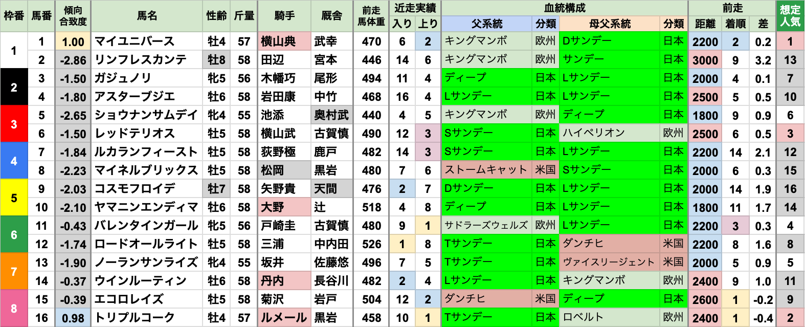 ⑯トリプルコーク/ルメール/黒岩陽一 統計イチオシ