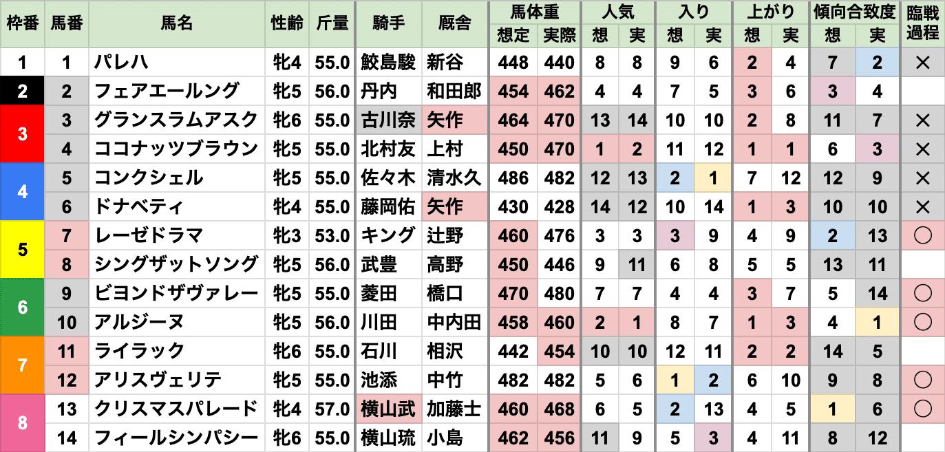 勝つのはヴィクトリアマイルから来た方と、レース傾向通りすぎる結果