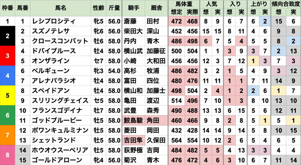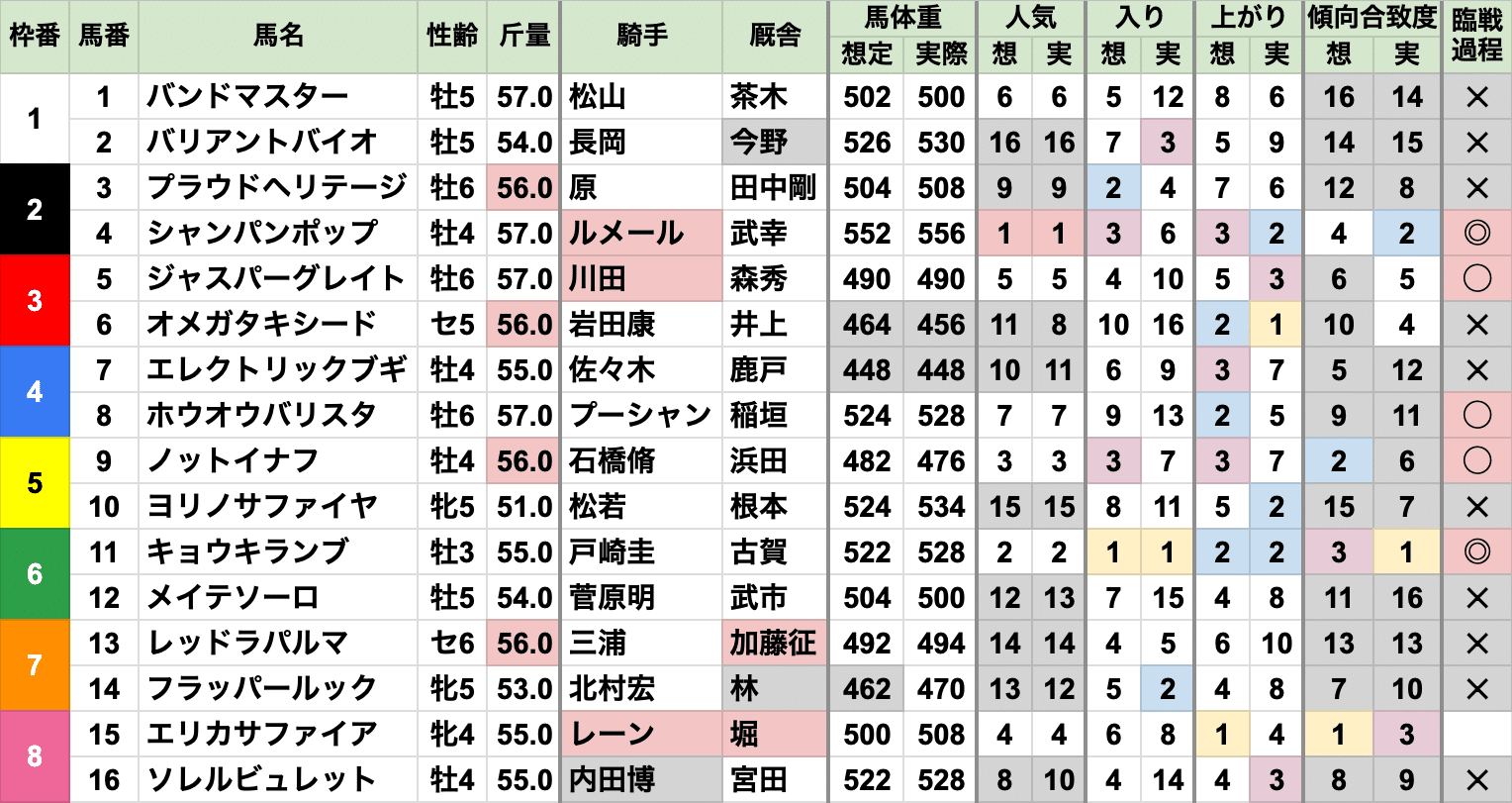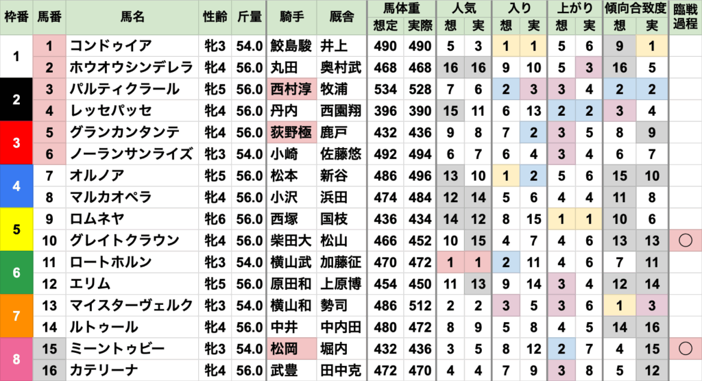 南武特別の勝ち馬も、前日時点の想定人気やと不利やったけど、当日は不利項目が無くなってた