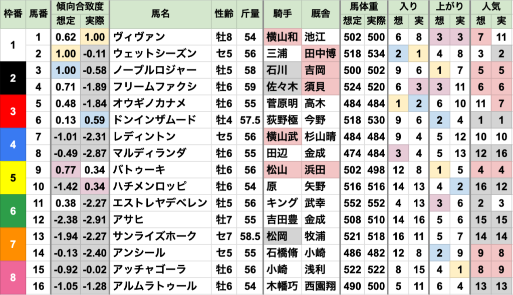 全馬がほぼ、近走実績通りに走った上で、合致度4番手が勝利