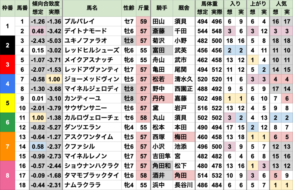 差し有利の傾向の中、勝ち馬の合致度はかなり低い