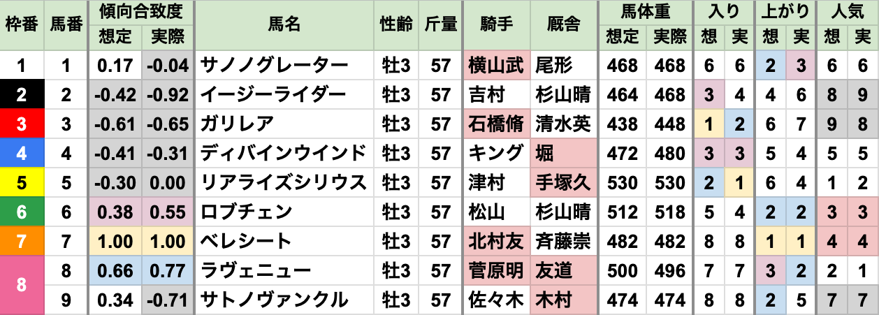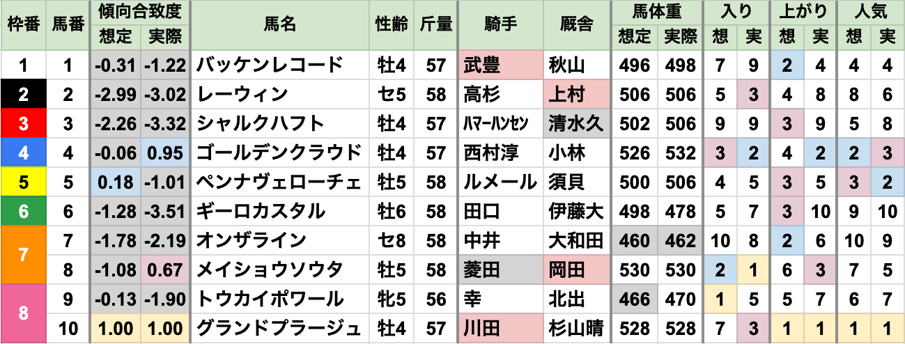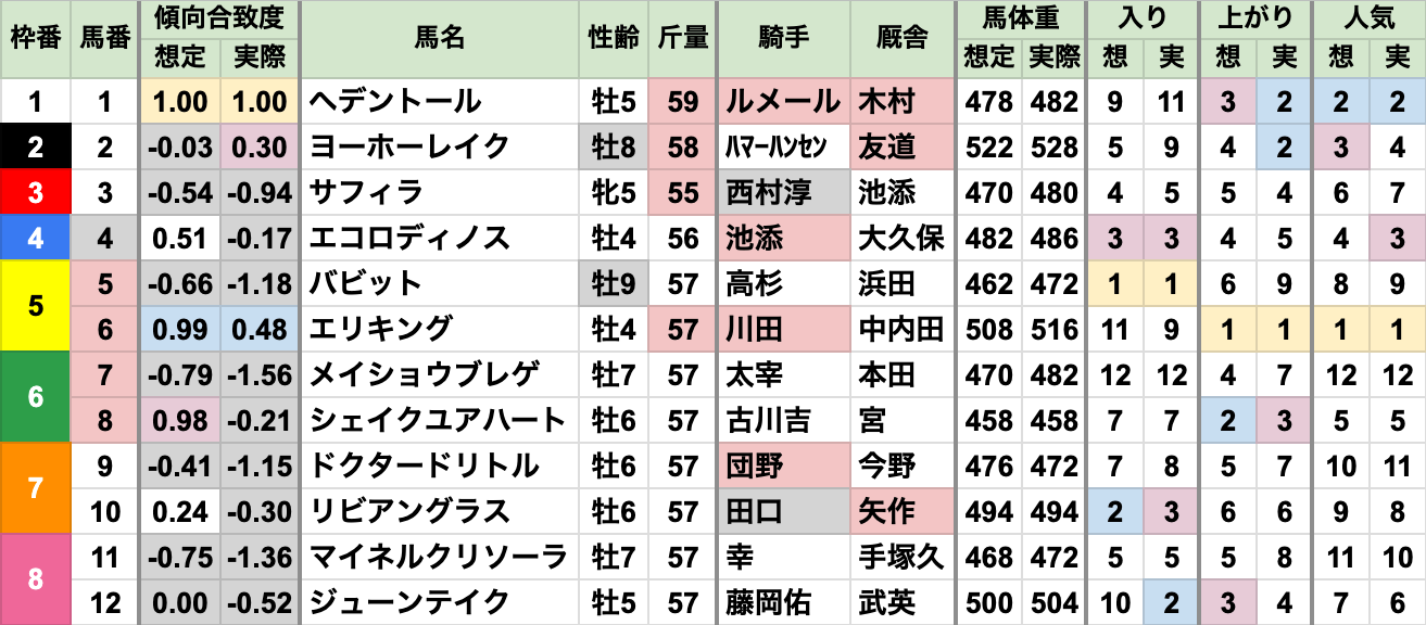 全馬がほぼ、近走実績通りに走った上で、合致度4番手が勝利