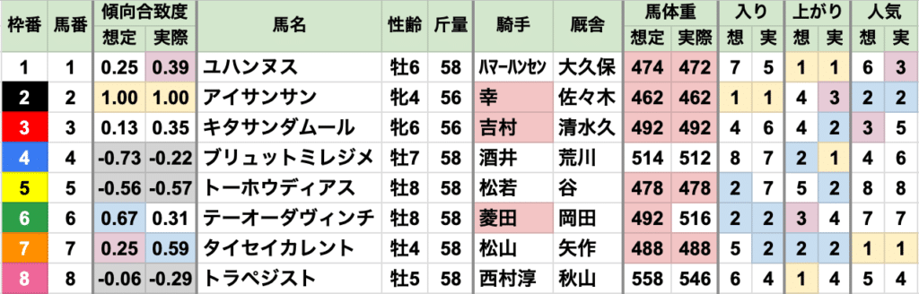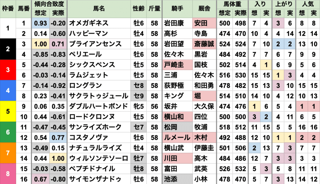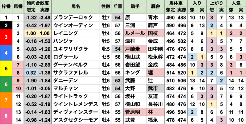あとは2番人気、差し有利と、例年通り