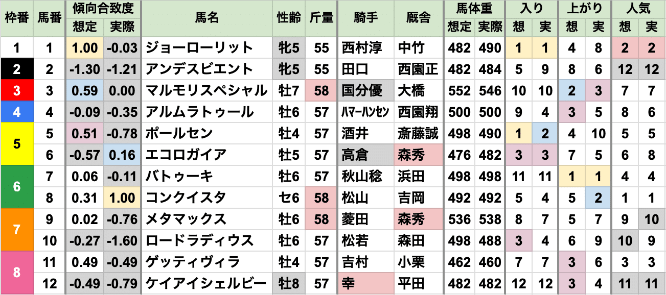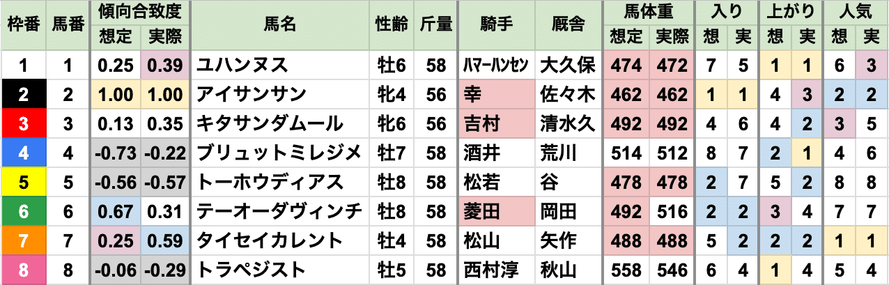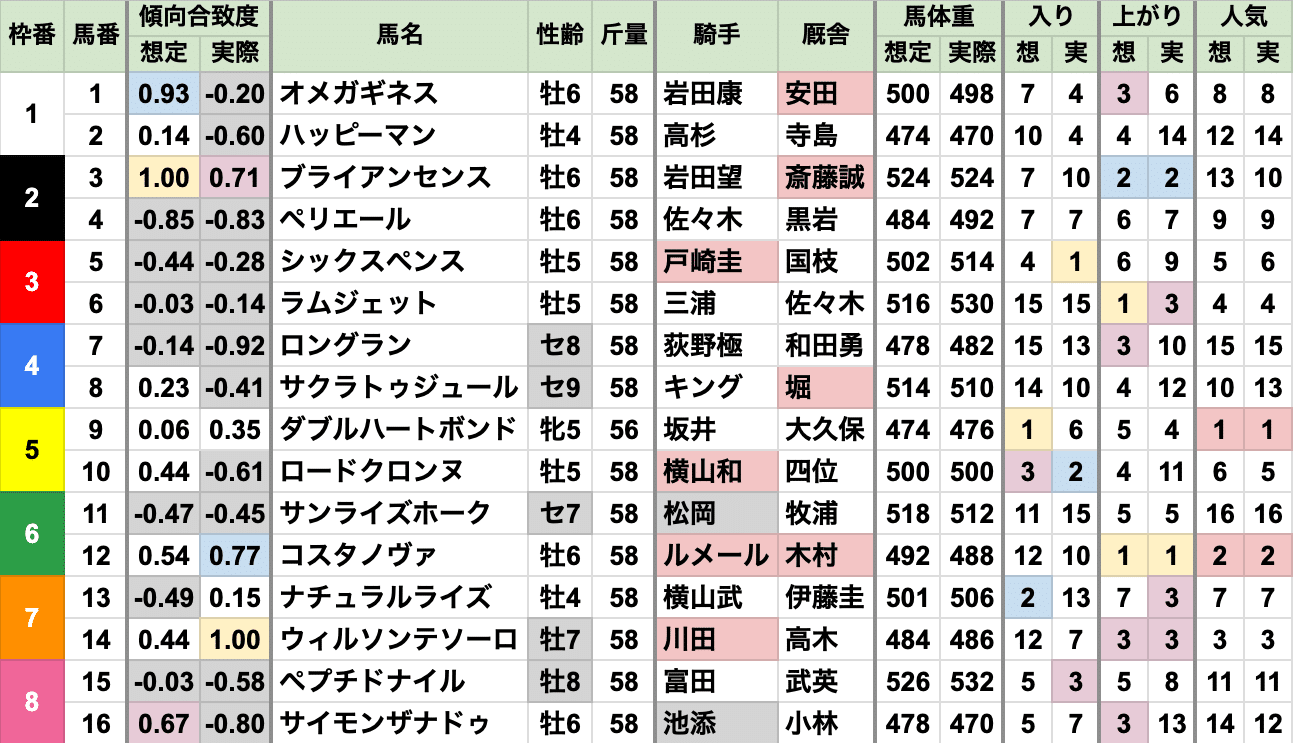 あとは2番人気、差し有利と、例年通り