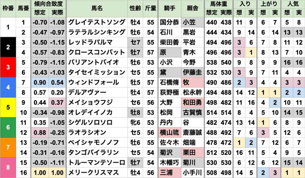 良馬場回復で、例年通りの上位人気安定