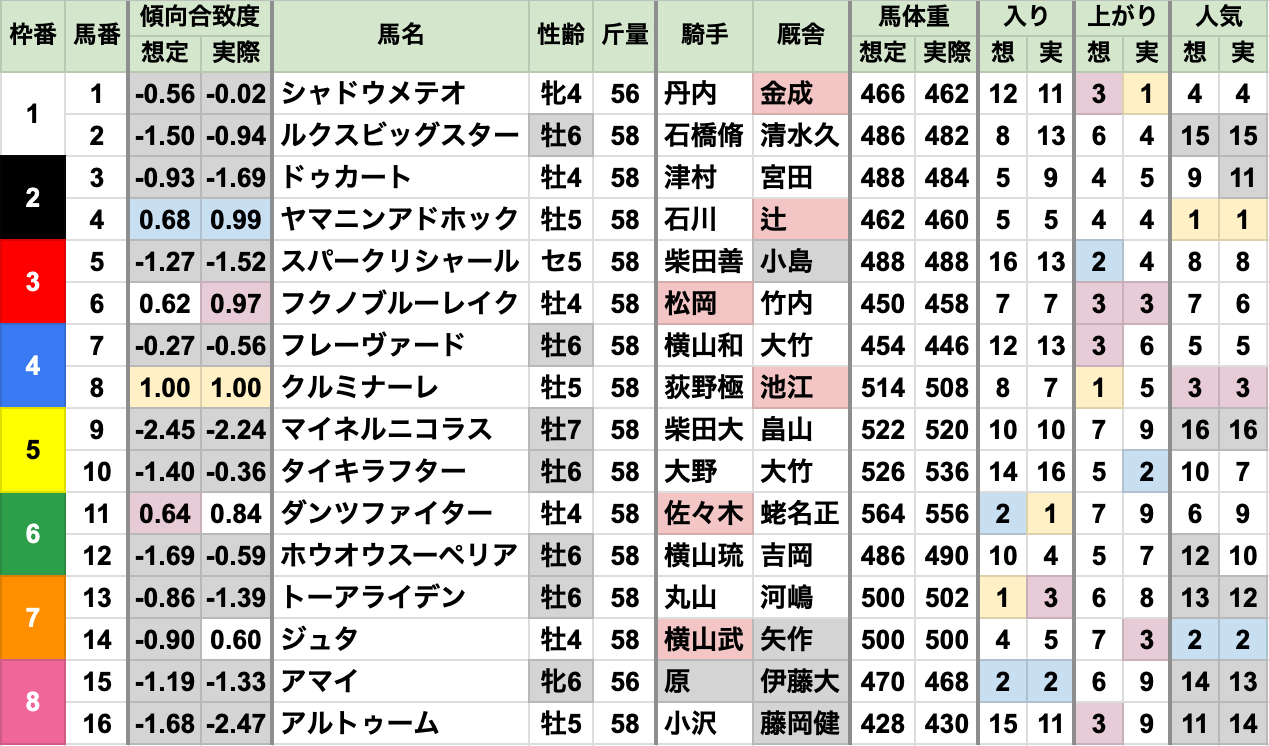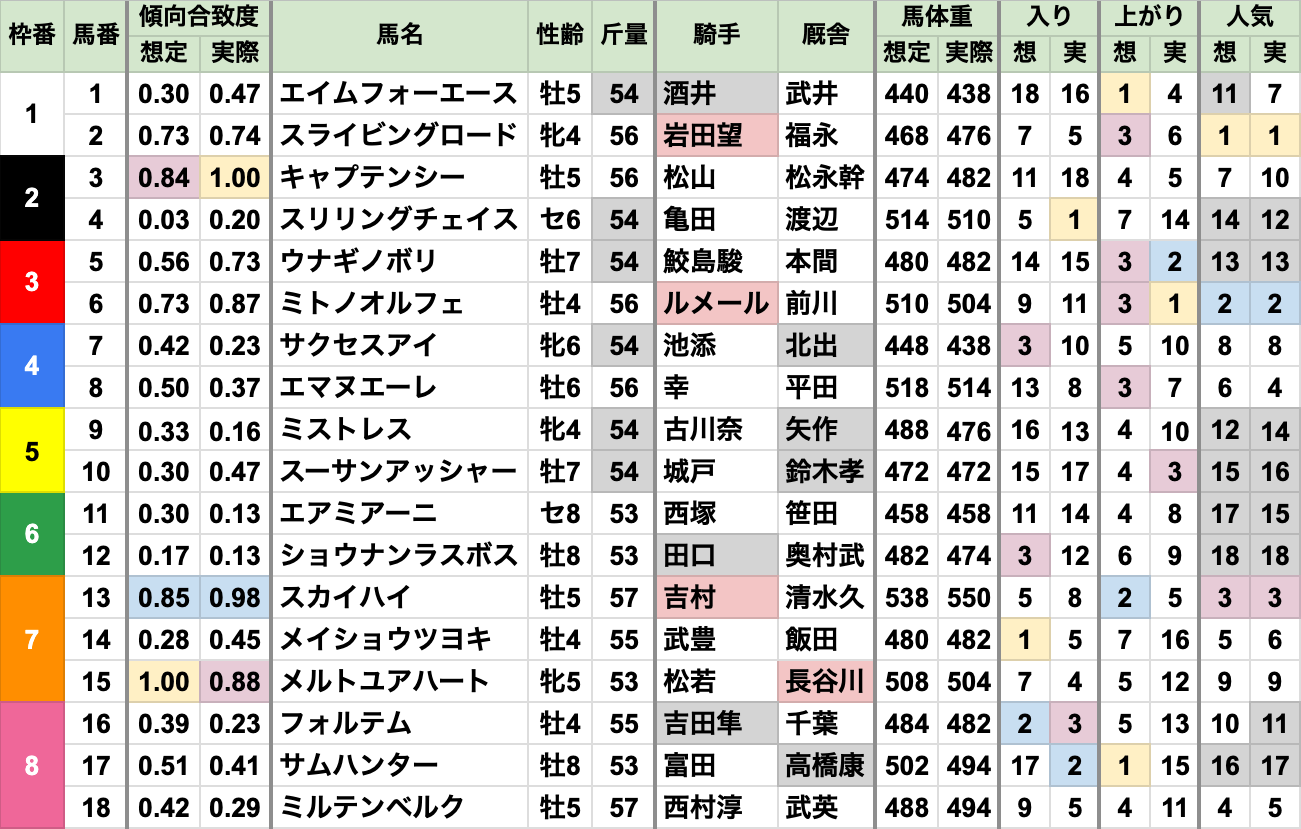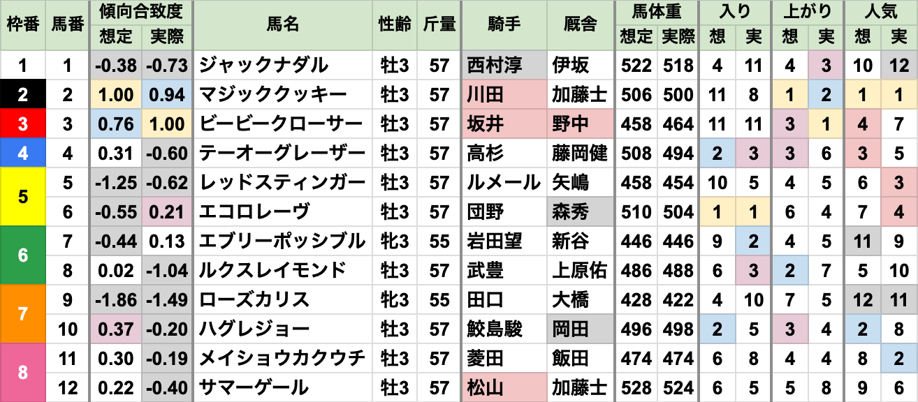 良馬場回復で、例年通りの上位人気安定
