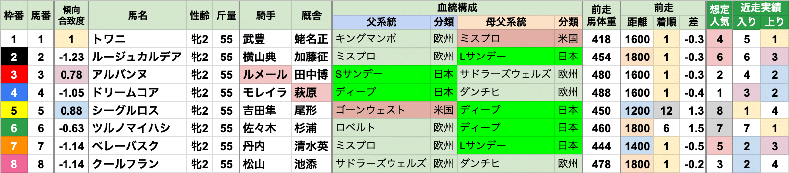 ・現行:2020年以降、レース条件が類似するレースのみ選抜